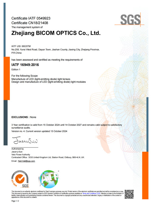 Founded in Shenzhen in 2005, Bicom Optics focuses on the entire industrial chain of non-imaging optical products, with optical lenses at its core. Our business encompasses research and development, design, production, and sales. Our main product portfolio is extensive, covering various optical lenses, precision injection molds, automotive ambient lights, and others. As one of the pioneering enterprises in optical lens R&D in China, Bicom Optics has been deeply rooted in the field of optical lenses and their related application scenarios since its establishment. We have always regarded optical design, precision injection mold design, and manufacturing as our core competencies. Adopting a product customization strategy and a unique business model of "one product, one focus point", we have, with our excellent product quality and professional services, not only amassed a large number of high-quality and stable customer resources but also successfully expanded our business into the automotive ambient light sector. This has enabled us to achieve diversified business growth and a more in-depth market presence. Currently, our company headquarters is situated in Jiashan, Jiaxing, Zhejiang Province. The headquarters' production base spans an area of over 77,000 square meters, while our Shenzhen factory covers more than 15,000 square meters, highlighting our strong large-scale production capabilities. Additionally, we have established offices in Shanghai and Hong Kong to fully meet the needs of customers in different regions and continuously enhance our brand influence and market competitiveness. |